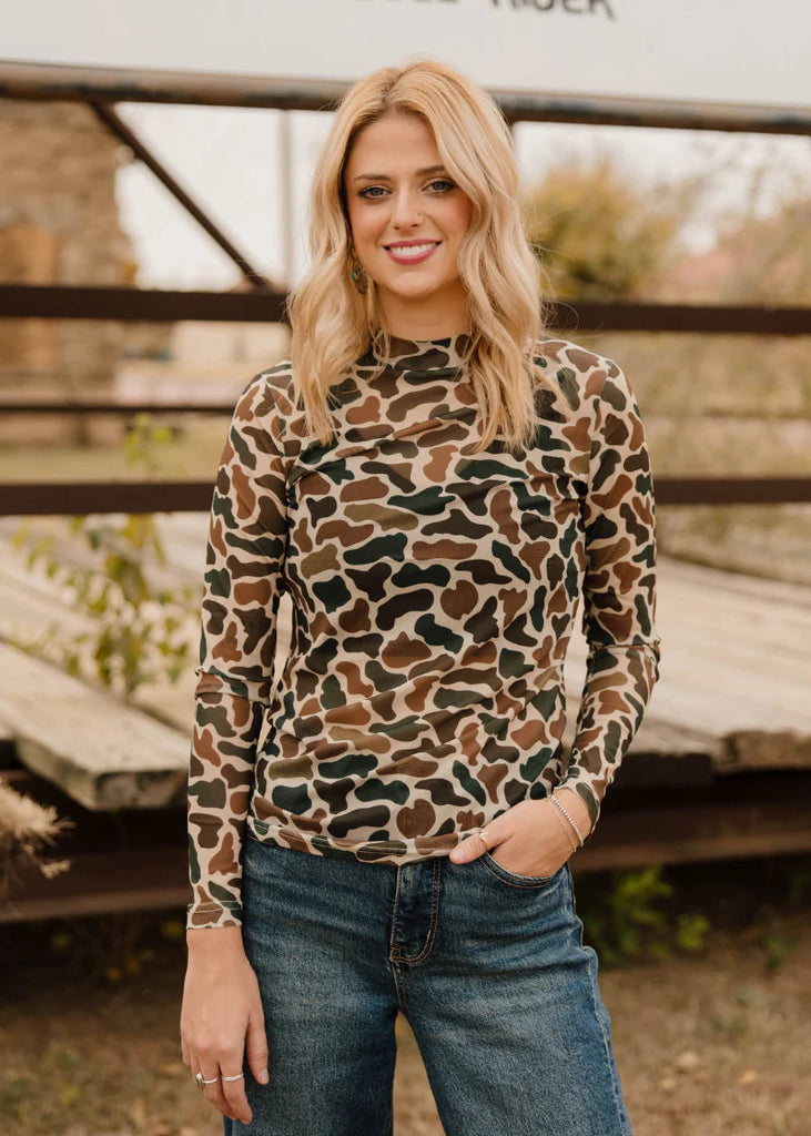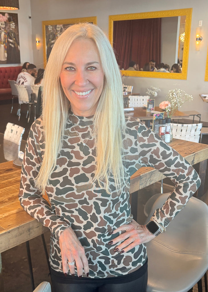 Unleash your daring side with the You Can't See Me Mesh Top! Featuring a trendy camo print and breathable mesh fabric, this top adds edge and style to any outfit. Perfect for those who aren't afraid to stand out and make a statement.